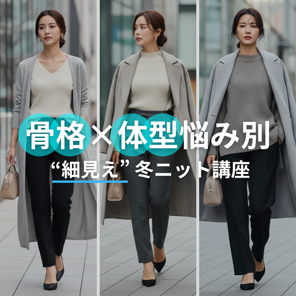 二の腕・お腹・ヒップ…冬こそ気になるパーツをカバーしつつ、きちんと見えするニット選びを骨格別に解説します。