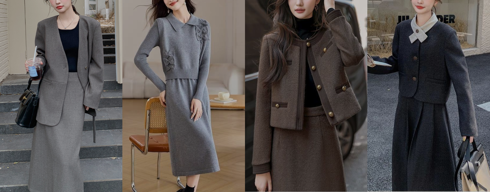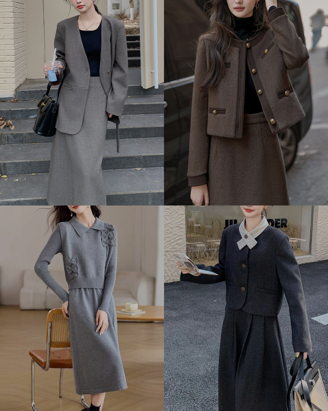 ウールライクジャケット&プリーツミディスカート セットアップ
