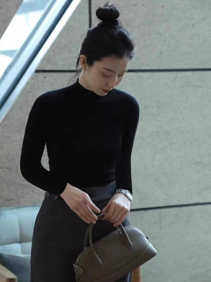 上質なウール素材を贅沢に使用したモックネックセーター。柔らかくしなやかな肌触りで、体にフィットしながらも窮屈さを感じないスリムなシルエットが魅力です。シンプルながらも品のあるデザインで、通勤・オフィスシーンはもちろん、休日のお出かけやカフェタイムにも活躍。首元までしっかり暖かく、1枚でもインナーとしても着回せる万能ニットです。