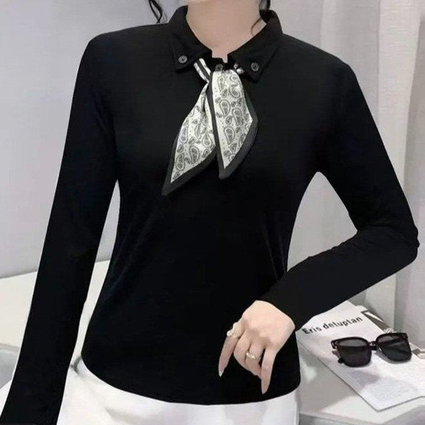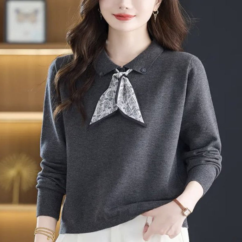 上品なスカーフ付きデザインが目を引くラペルカラーニットトップス。柔らかな肌触りのニット素材で、着心地が良く、1枚で華やかな印象を演出します。襟付きのデザインがきちんと感をプラスし、オフィスや通勤スタイルにもぴったり。スカートやパンツとの相性も抜群で、上品な韓国ファッションコーデに仕上がります。